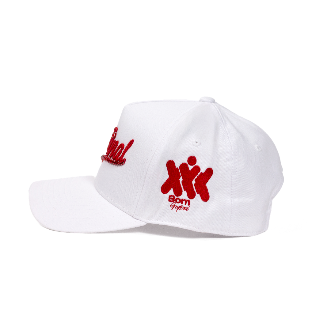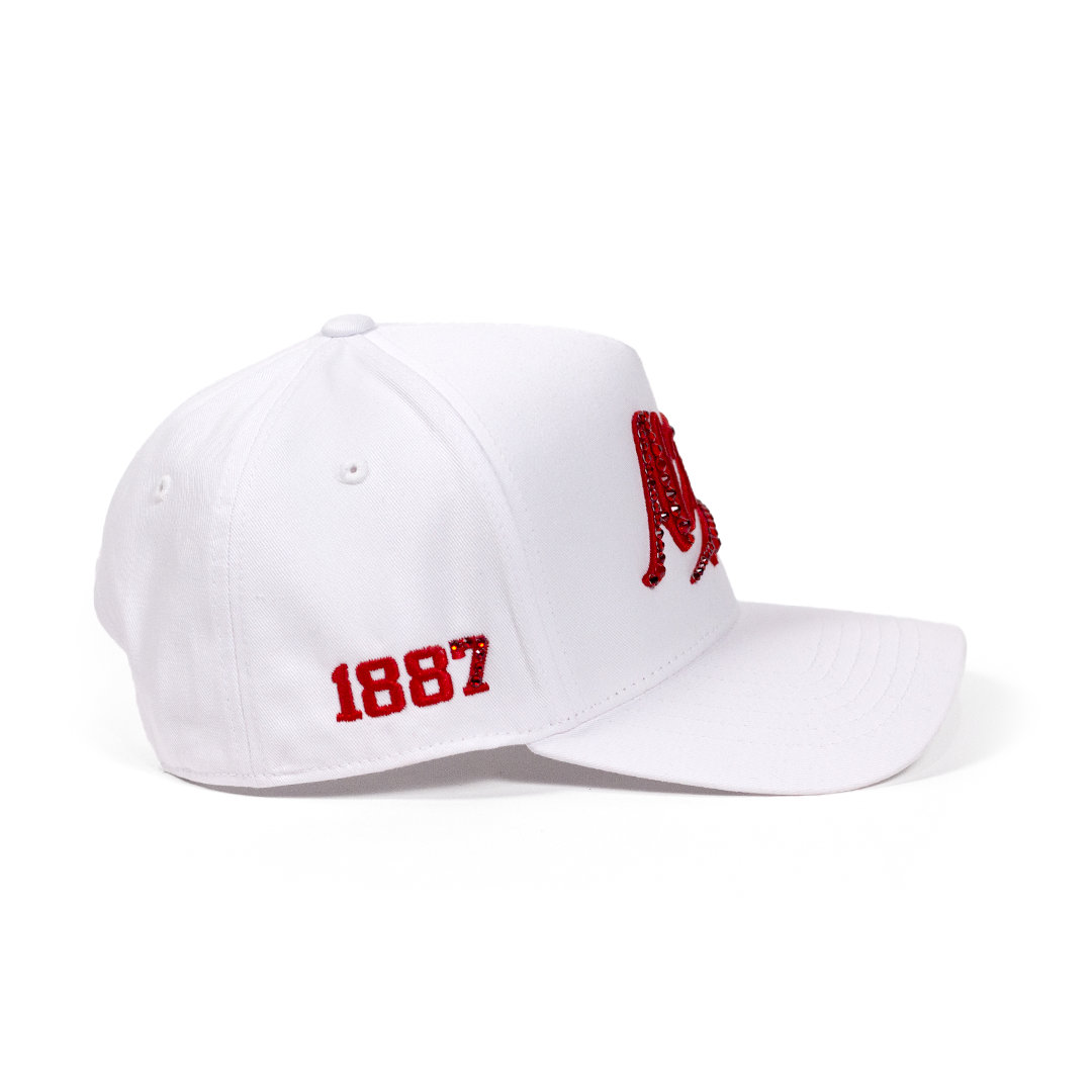 Blanca como la paloma, pero con el flow de un político que no cogía esa. La gorra “Balaguer” es para el que camina vacano, pero sabe que en el fondo e' un tíguere guillao. Con pedrería roja que brilla más que un discurso en campaña y bordados que gritan poder sin tener que alzar la voz.