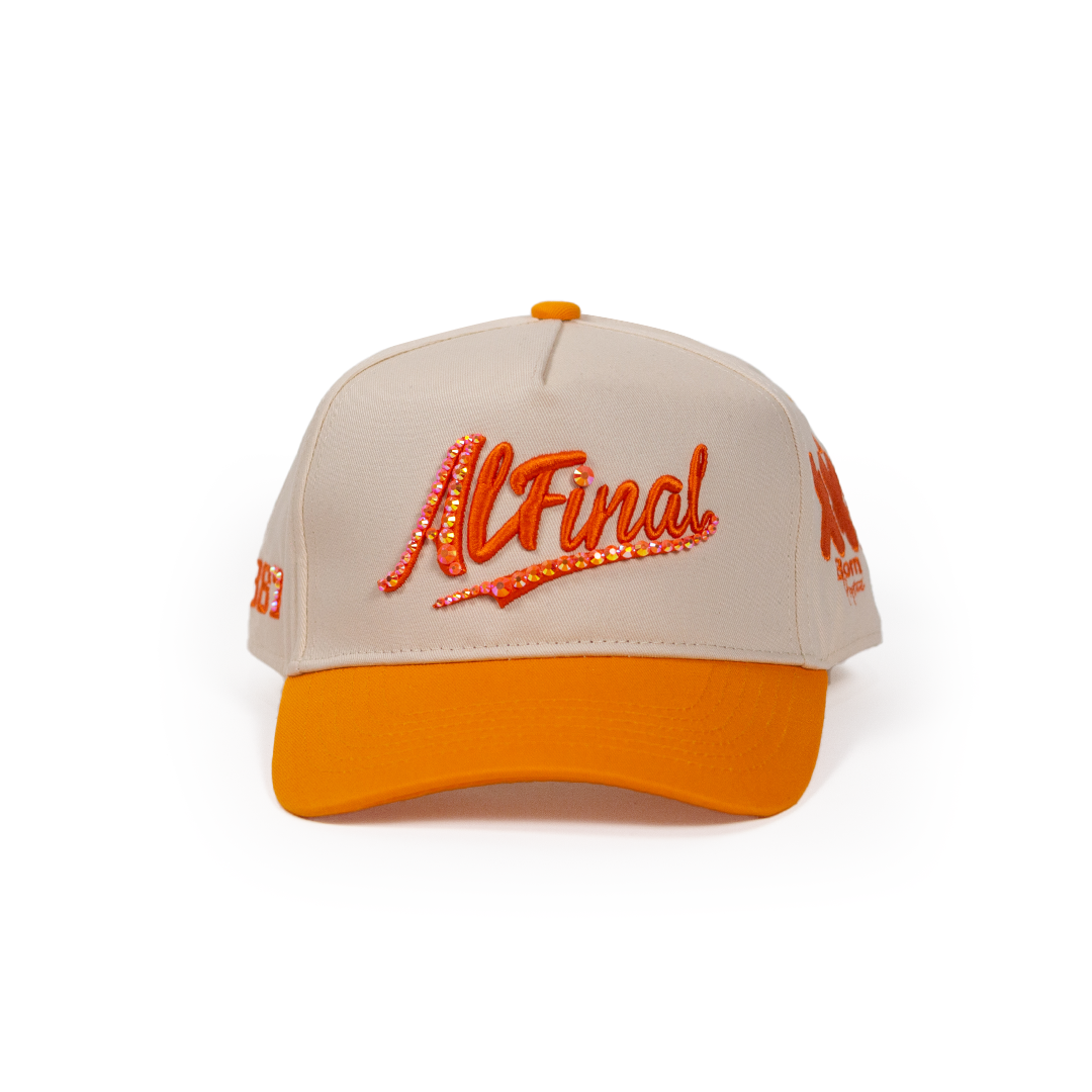 Con su base crema y visera naranja vibrante, esta pieza representa la mezcla perfecta entre lo dulce y lo refrescante, igual que la bebida que le da nombre. El bordado "Al Final" en hilo naranja brillante con cristales resalta como un juguito de china pila de frío. Esta gorra no es solo pa’ ponerse, es pa’ romper. Ideal pa’ los que sueñan en grande y viven en vacanería.